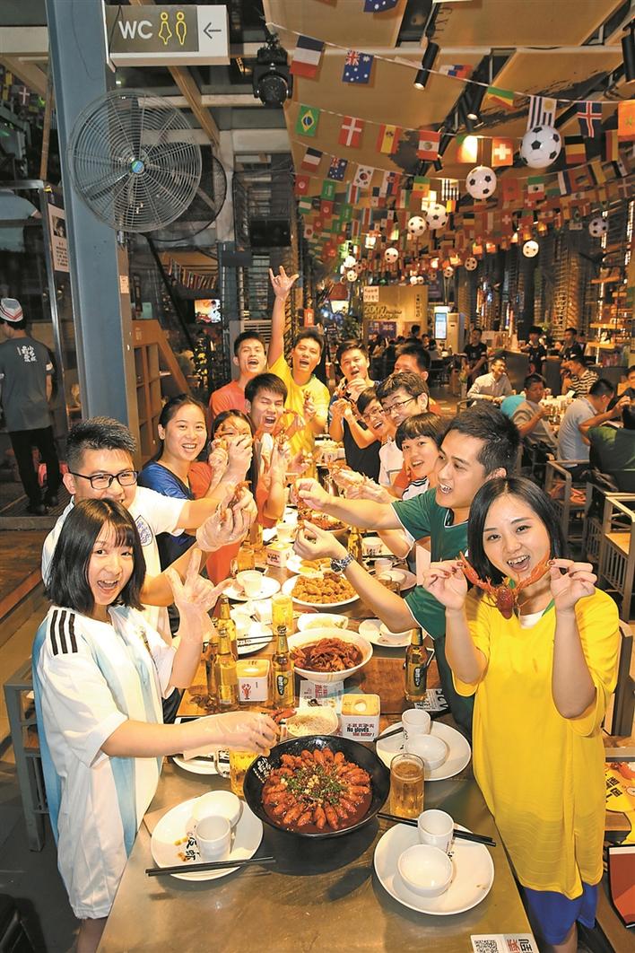 但這次世界杯期間,許女士找到了一個(gè)好去處:“看球其實(shí)不重要,重要的是大家聚在一起,但口味一定要找大家都能接受的,所以挑來挑去最后選擇了龍巢。”在昨晚的龍巢店內(nèi),一整盤的蛋黃味小龍蝦被許女士吃個(gè)精光:“這是吃得最暢快的一次,整個(gè)氛圍也很到位,接下來的比賽就扎根在這里了?!?/p>