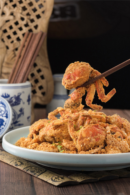 鋪上蟹肉蟹黃熬制而成的蟹粉
