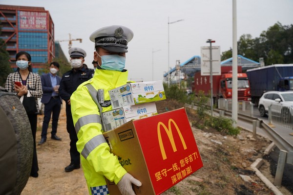 你們在一線戰(zhàn)疫,我們來為你補(bǔ)給!隨后,市關(guān)愛辦攜手伊利集團(tuán)、麥當(dāng)勞先后前往光明羌下公安檢查站、寶安區(qū)松安防疫檢查點(diǎn),為正在一線忙碌的工作人員,送上愛心牛奶與熱乎乎的愛心午餐?!澳銈冃量嗔恕?、“繼續(xù)加油”……每發(fā)放一次牛奶與午餐,工作人員都不忘了戰(zhàn)疫者們致敬致謝。