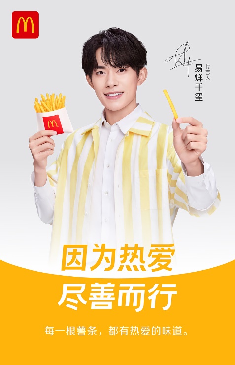 作為千禧一代的杰出代表,易烊千璽自小堅(jiān)守對(duì)藝術(shù)的熱愛,以百煉成鋼的執(zhí)著對(duì)待每一段旋律、每一個(gè)舞步、每一句臺(tái)詞,只為在每一束聚光燈下綻放無瑕光芒。他熱愛挑戰(zhàn),不斷拓展自身發(fā)展的邊界,作為優(yōu)秀的演員、歌手和舞者,一次次呈現(xiàn)驚喜。同時(shí),他身體力行做公益,用行動(dòng)詮釋榜樣力量,是充滿正能量的青年偶像。易烊千璽的成長(zhǎng)經(jīng)歷與個(gè)人發(fā)展和麥當(dāng)勞“因?yàn)闊釔?,盡善而行”的品牌理念不謀而合,也因此促成了這次惺惺相惜的合作。