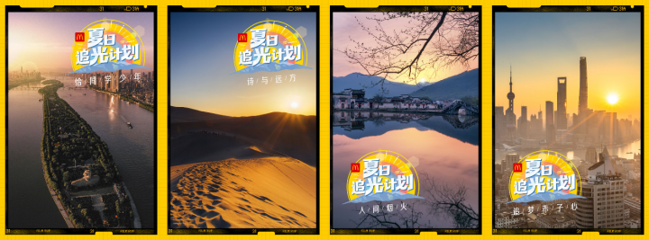 7月6日,麥當(dāng)勞“夏日追光計劃”從西安大雁塔出發(fā),來到長沙橘子洲頭,領(lǐng)略“恰同學(xué)少年”的意氣風(fēng)發(fā)。從敦煌、漠河,到青海湖和張掖,一起尋找“詩與遠方”??缭角鄭u、杭州、福州、大連、蘇州和平遙,看遍“人間煙火”。在廣州小蠻腰和深圳東門,感受“追夢赤子心”。為期28天的追光之旅,暖心浪漫的麥當(dāng)勞為大家搜集不同城市的日出,并用四個主題串起28地。敬請關(guān)注麥當(dāng)勞嗶哩嗶哩(B站)帳號,鎖定連續(xù)28天的直播,也可以訪問麥當(dāng)勞官方網(wǎng)站觀看每天日出的精華視頻。