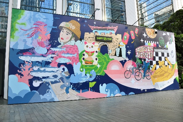 圍擋的室內(nèi)部分采用創(chuàng)新的互動形式,由藝術(shù)家現(xiàn)場親自手繪完成的8幅單元涂鴉畫板組合而成。藝術(shù)家用摩登時尚的波譜藝術(shù),向當(dāng)?shù)刭e客們奉送出中國傳統(tǒng)的祝福及Shake Shack的活力熱情。