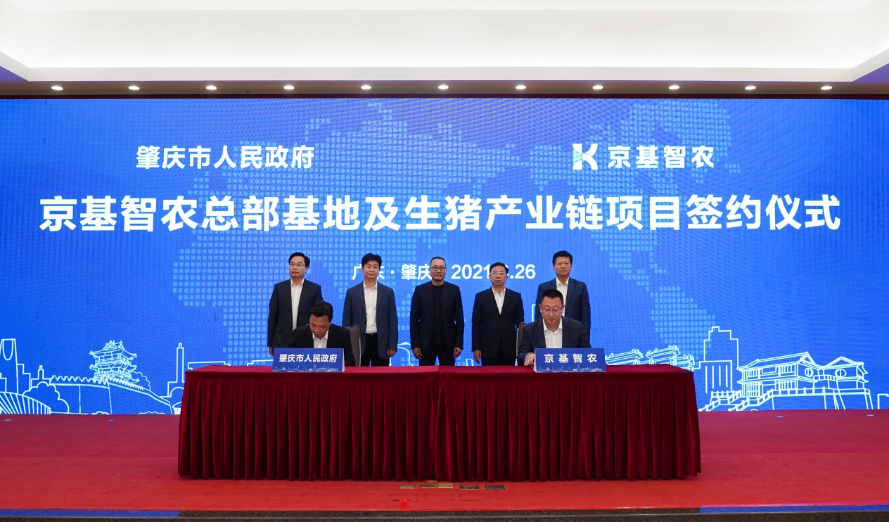 京基智農(nóng)總裁巴根(中)與高要區(qū)、德慶縣人民政府簽約