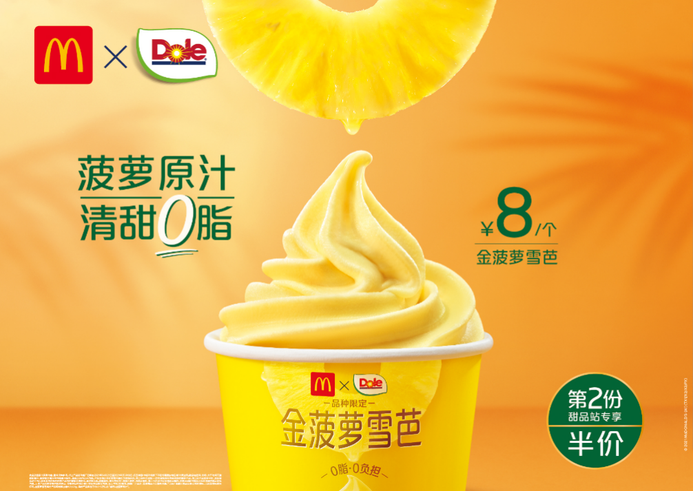 麥當勞中國致力于不斷進行菜單創(chuàng)新,為消費者提供更美味、更多元的餐食選擇。2021年,麥當勞中國推出“創(chuàng)異菜單”平臺,每月為顧客呈現(xiàn)現(xiàn)制的創(chuàng)意新品,油潑辣子新地、臟臟年糕麥旋風、芝芝牛牛堡等本土創(chuàng)新的美味產(chǎn)品成為社交媒體的熱門話題。2021年2月和3月,全新輕食產(chǎn)品“輕盈夏巴特系列”及植物肉新品“植造厚制早餐肉系列”相繼上市。此次金菠蘿雪芭的推出,為麥當勞中國甜品菜單增添了零脂的輕食選擇。