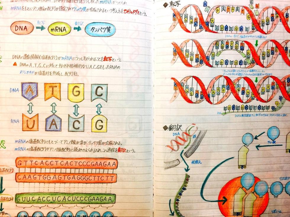 近日,一名日本男生在網上公布了自己高一時的筆記,生物、地理等等課程的筆記在他的筆下變得生動有趣起來,堪比教科書。圖/Twitter用戶@おおしま