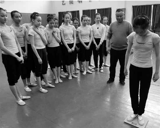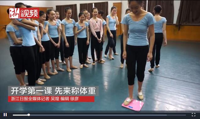 2月21日,記者來到浙江藝術(shù)職業(yè)學(xué)院舞蹈系,看著那個骨瘦如柴的女孩子輕盈地跳上體重秤,顯示是43.6公斤。“天啦,超重了超重了,要跑10圈了!”她說。