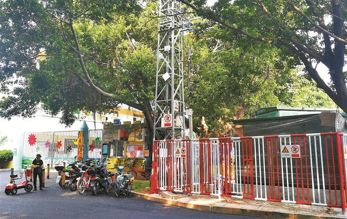 ▲讓家長擔(dān)憂的高壓電柜距離幼兒園門口不到5米。深圳晚報(bào)見習(xí)記者 高靈靈 攝