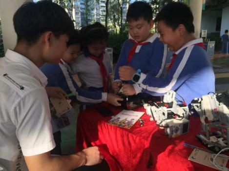 在活動(dòng)現(xiàn)場(chǎng),不少智能科技迷正被愛匯百變教育科技有限公司的EV3編程機(jī)器人高爾夫、EV3編程機(jī)器人幸運(yùn)大轉(zhuǎn)盤、EV3編程機(jī)器人障礙大闖關(guān)、電磁感應(yīng)千人震等系列體驗(yàn)活動(dòng),通過親身體驗(yàn),同學(xué)們收獲了LEGO仿真機(jī)械結(jié)構(gòu)及圖形化編程、電動(dòng)發(fā)電、電磁感應(yīng)、電路等科普知識(shí)。