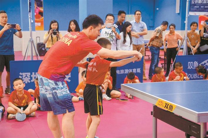 晶報(bào)5月14日訊 5月13日下午,中國國家乒乓球隊(duì)運(yùn)動(dòng)員方博、王藝迪出席了“中國乒乓球隊(duì)進(jìn)校園公益活動(dòng)”。兩位球星與深圳市寶安區(qū)孝德學(xué)校的同學(xué)們開展了有趣的乒乓球游戲,在半小時(shí)的互動(dòng)中,同學(xué)們實(shí)現(xiàn)了與球星的零距離交流學(xué)習(xí),體驗(yàn)了乒乓球的多種玩法。