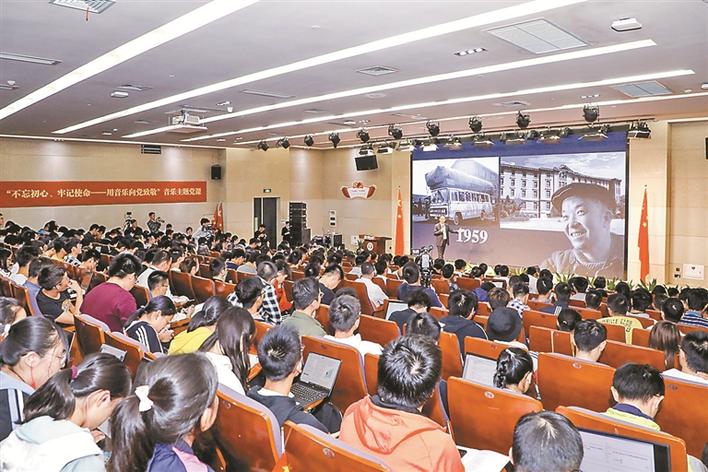 主題黨課上,劉洋用音樂串起了一條波瀾壯闊的時(shí)代線索,激發(fā)師生愛國情懷和使命感、責(zé)任感。