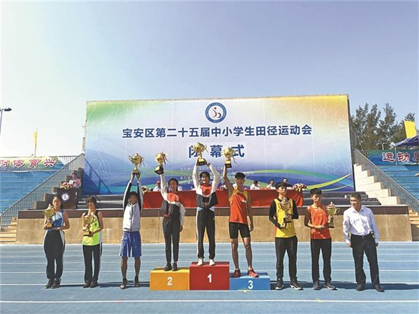 ▲沙井中學(xué)高中組蟬聯(lián)寶安區(qū)第二十五屆田徑運(yùn)動會團(tuán)體總分第一名。