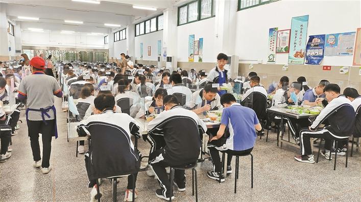 “學(xué)校食堂飯菜可口,有多種可以選擇。”梅林中學(xué)高三(7)班學(xué)生劉嘉琳表示。據(jù)悉,返校當(dāng)天,該校高三年級有480多位學(xué)生在學(xué)生餐廳和改造后的乒乓球場定人定座就餐。