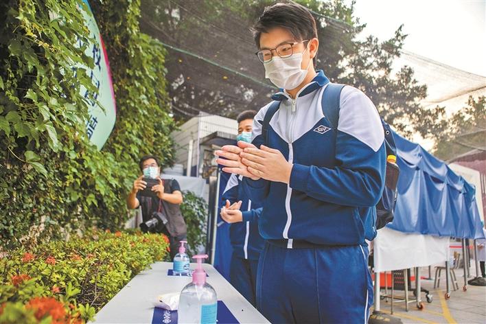 考慮到即將迎來較為炎熱的季節(jié),紅嶺中學(xué)高中部師生入校需要經(jīng)歷3次體溫檢測。據(jù)悉,當(dāng)天該校有1111名高三學(xué)生、202名老師返校,和其他學(xué)校的師生一樣,均經(jīng)過了核酸檢測且都呈陰性。學(xué)生從校門口開始走進(jìn)指定的通道,需要先在消毒池站立消毒,再進(jìn)行人臉識別測溫,然后到洗手池用消毒洗手液洗手后走進(jìn)紅線體溫測量通道,最后才能進(jìn)教室,進(jìn)入教室待身體“冷靜”下來些許后,再次用體溫槍檢測體溫。此外,入校以后每個學(xué)生還可以領(lǐng)取20個口罩,這是一周的用量。