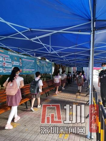 我起了個(gè)大早,高高興興地來到學(xué)校。在校門口不遠(yuǎn)處,我看見一排排金色小腳印在望著我笑,好像在對(duì)我說:“歡迎你返校!”進(jìn)入校園后,熟悉的林蔭道下多了許多的大帳篷,帳篷中間有一個(gè)巨大的測(cè)溫箱。走過測(cè)溫箱,一排感應(yīng)免洗洗手液站得筆直,正在招呼我們趕緊洗手消毒。因?yàn)樾鹿谝咔椋覀兊男@不一樣了,多了許多守護(hù)我們健康的安全小衛(wèi)士。