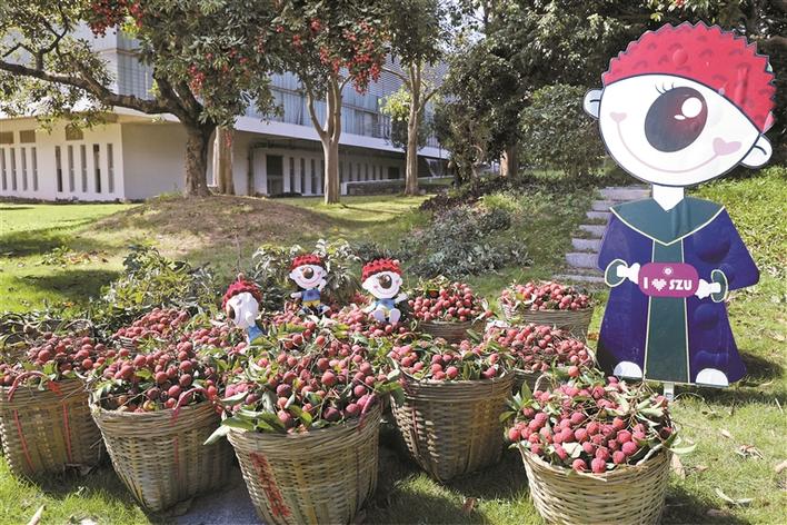 深圳晚報2020年06月19日訊 荔枝熟了,深圳大學迎來了傳統(tǒng)節(jié)日——“荔枝節(jié)”。每年六月荔枝成熟時,深大都會采摘果實,免費發(fā)放給同學以及校友,并舉辦精彩的荔枝節(jié)活動。今年深大繼續(xù)秉承傳統(tǒng),將采摘下來的荔枝,每天派發(fā)給全校師生品嘗,師生在各飯?zhí)瞄T口拿著校園卡均可領取。今年由于疫情原因,學生還沒有全部返回校園,深大還將把荔枝通過快遞的方式冷鏈直郵到學生手中。