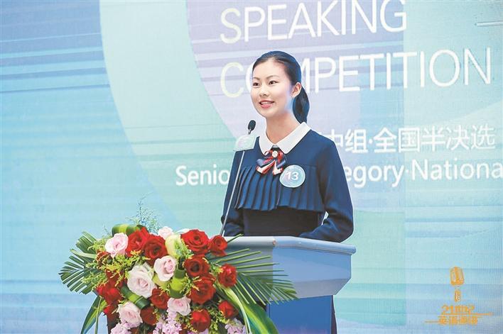 深外外語書院學(xué)生王心怡參加21世紀(jì)杯英語演講比賽全國總決賽。