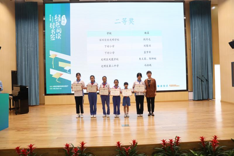 在光明區(qū)第五屆“綠色閱讀——綠書簽”設(shè)計大賽中,學(xué)校榮獲優(yōu)秀組織獎,郭晨曦同學(xué)獲一等獎,朱文睿、陳柳婉同學(xué)獲二等獎,陳欣妍同學(xué)獲優(yōu)秀獎。
