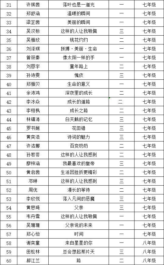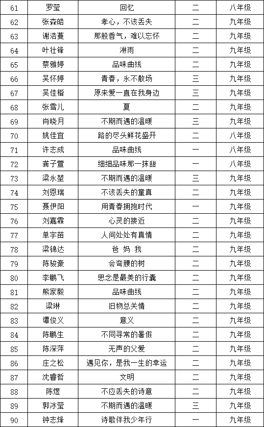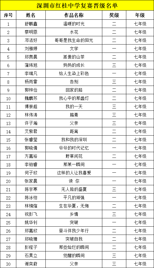 自2021年1月,活動征稿啟動以來,獲得了深圳市廣大中小學(xué)生、教師、文學(xué)愛好者的熱烈響應(yīng)積極參與,吸引了深圳百余所學(xué)校的上萬人關(guān)注報名?,F(xiàn)公布深圳市紅桂中學(xué)晉級復(fù)賽名單如下: