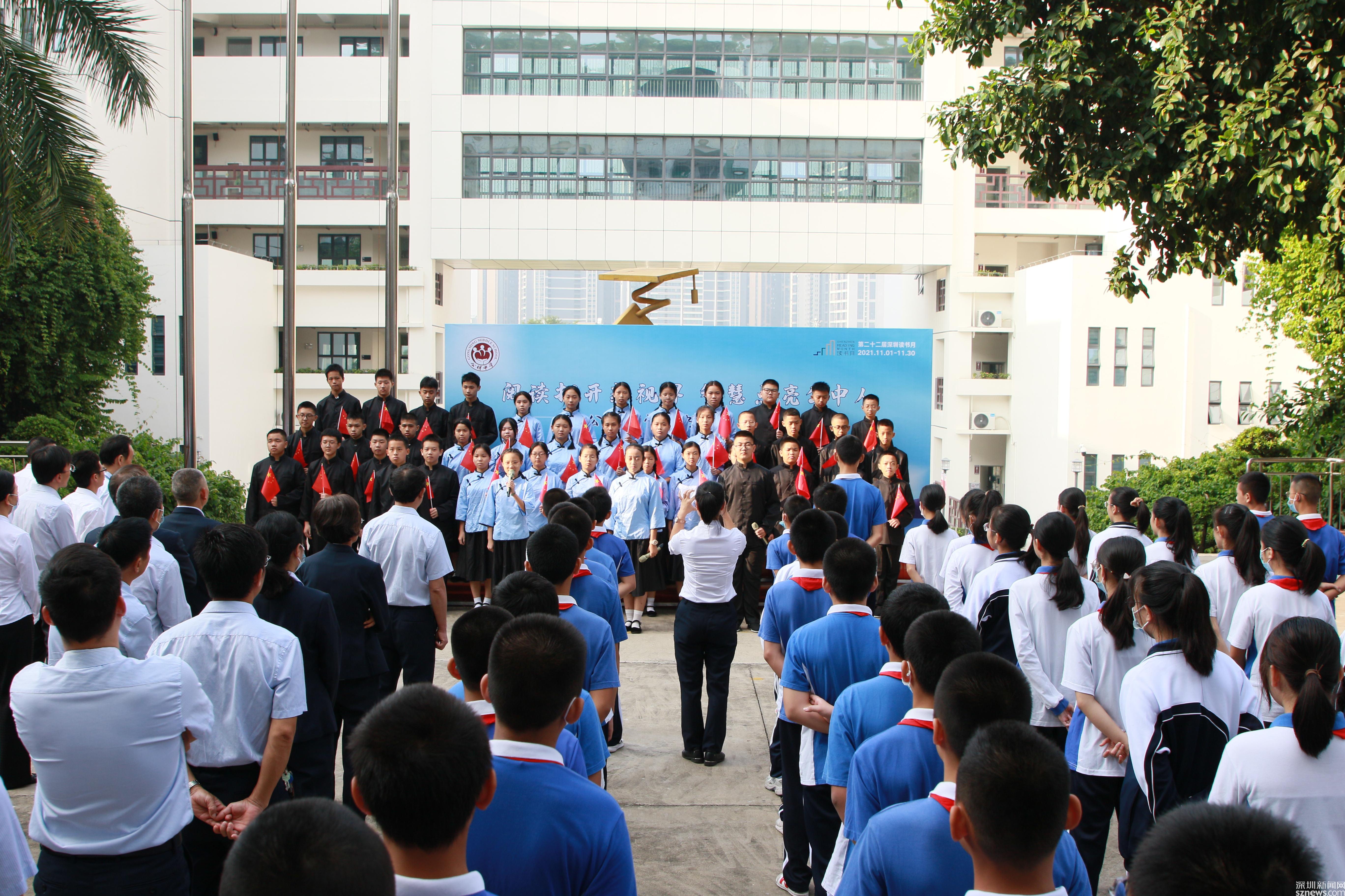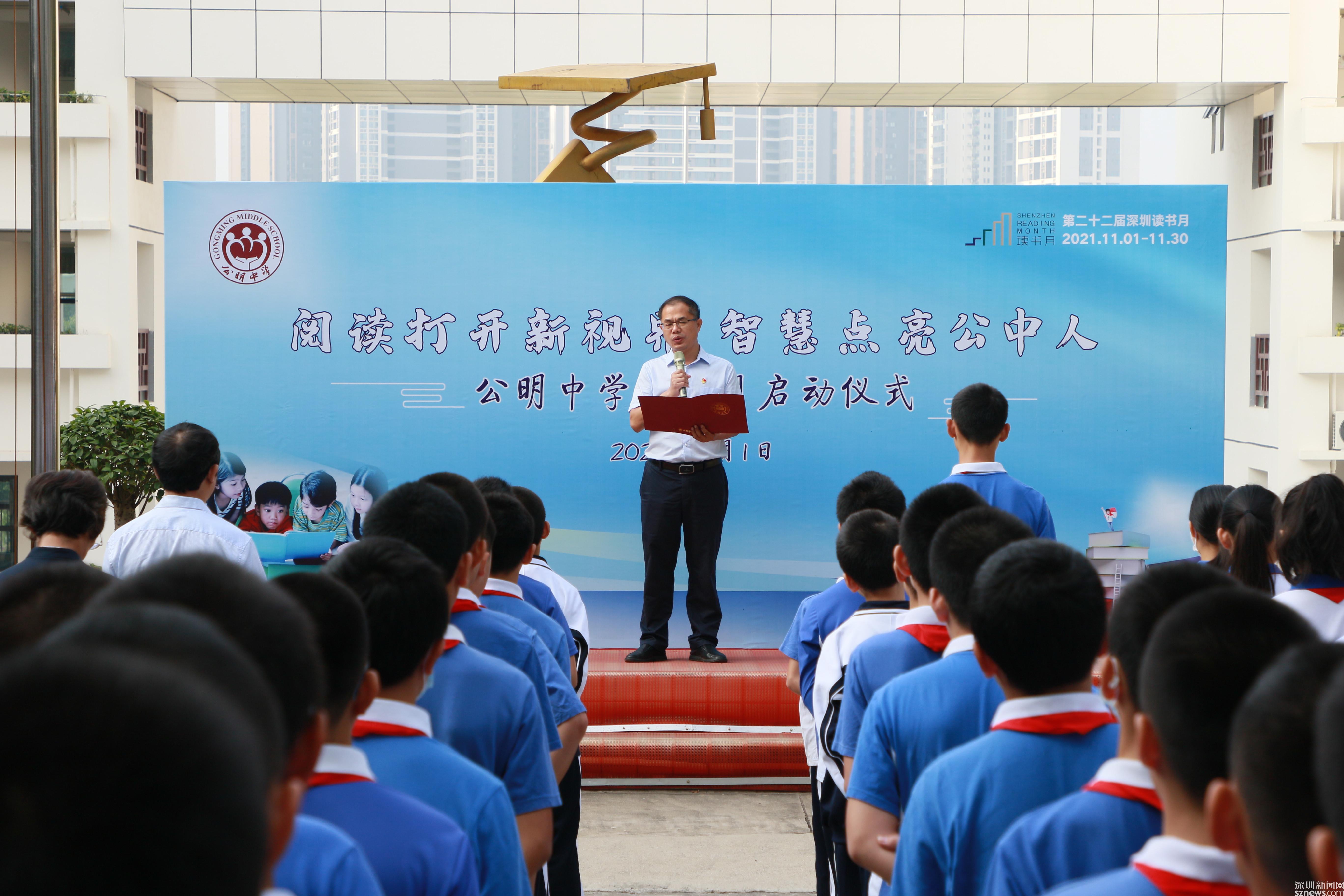 讀特客戶端·深圳新聞網(wǎng)2021年11月2日訊 (記者 曹園芳 通訊員 丘翹楚 劉小云 曾靜敏)為弘揚(yáng)“尊重知識(shí)崇尚文明”的閱讀理念,培養(yǎng)師生良好的閱讀習(xí)慣,營(yíng)造智雅的學(xué)習(xí)氛圍,塑造濃郁書(shū)香學(xué)習(xí)型校園,11月1日上午,深圳市光明區(qū)公明中學(xué)組織開(kāi)展了本年度讀書(shū)月啟動(dòng)儀式,全校師生參加了活動(dòng),活動(dòng)由初二(5)班譚欣怡同學(xué)主持。