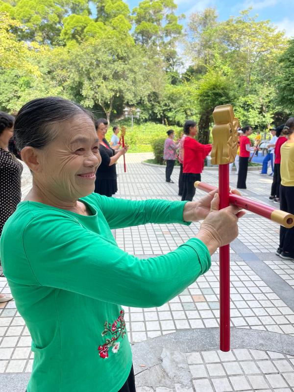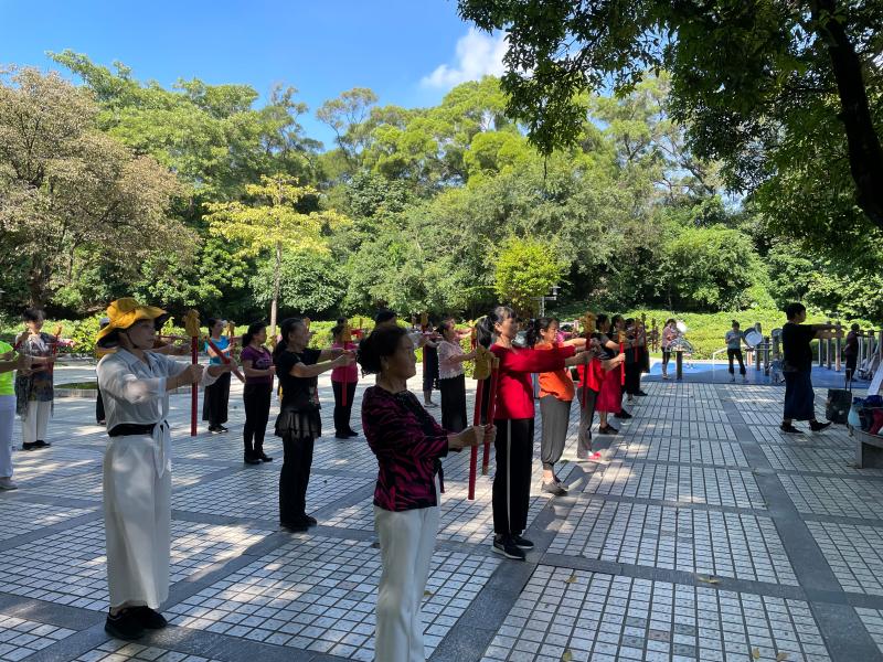 讀特客戶端·深圳新聞網(wǎng)2021年11月26日訊(記者 陳彬)這一兩個月來,每天早上,有一群精氣神十足的阿姨們,手持一種舞蹈道具,在南頭古城臨中山公園的地方,非常有意思地跳著一種舞蹈,成為了南頭古城的一道風景。在她們舞蹈時,時不時會有路人走近好奇地問:阿姨,你們這是在跳一種韓國舞蹈、還是日本舞蹈?她們會指著旁邊的KT板展架說:好好看看那上頭,學習學習我們中國文化。