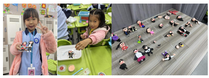 翌日,老師們再次來到華一校園,為小學部104班的學生們帶來了一場以“給老師塑像”為主題的泥塑體驗課。課堂中,老師先是一步步引導孩子該如何觀察他們的模特,后又鼓勵他們大膽動手,釋放自己的想象力和創(chuàng)造力。孩子們也都“各顯神通”,用自己獨特的方式去表現(xiàn)他們眼中老師的形象。有的為老師做了蝴蝶結(jié),有的為老師帶上耳環(huán),有的給老師換衣服,有的給老師戴眼鏡,氣氛十分活躍。在課堂結(jié)束時,大家都興奮地捧著自己的作品,與老師、同學們分享著創(chuàng)作的喜悅。