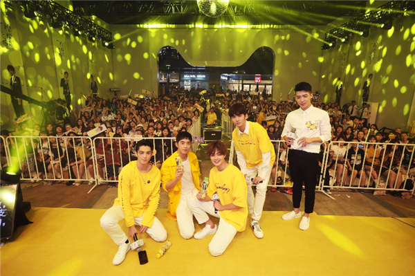 圖:F4與粉絲在達(dá)能檸檬來(lái)的見(jiàn)面會(huì)現(xiàn)場(chǎng)點(diǎn)亮檸檬流星雨