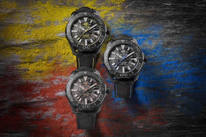 ????泰格豪雅Aquaracer競(jìng)潛系列碳纖維腕表的制作工藝巧妙采用高溫鍛壓樹脂,隨機(jī)注射碳纖維,因此,每款腕表上如同大理石般交織的黑灰色碳纖維紋路,均為獨(dú)一無(wú)二的呈現(xiàn),一眼望去,讓人不禁聯(lián)想到海洋的深邃變幻。配合精美黑色織物表帶以及彩色頂面縫線,與表盤上的點(diǎn)綴顏色保持一致的色調(diào),造就充滿活力的視覺體驗(yàn)。300米防水深度,保留與泰格豪雅不可分割的時(shí)尚和運(yùn)動(dòng)的個(gè)性外觀,競(jìng)潛系列碳纖維腕表是開啟探險(xiǎn)、踏上征程的理想搭檔。