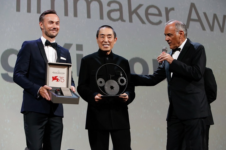 ????就此次張藝謀獲獎,威尼斯國際電影節(jié)主席阿爾貝托?巴貝拉(Alberto Barbera)表示:“張藝謀不僅是當代影壇的杰出導演之一,而且他不拘一格的作品,呈現(xiàn)了電影作為世界語言的演變過程,同時象征著中國影壇的蓬勃發(fā)展。作為當代電影的先驅人物,張藝謀擅于以獨特而出眾的視覺美學風格,凸顯劇本、故事和豐富的中華文化。張藝謀的電影處女作《紅高粱》(1987年)即令他蜚聲國際,此作品改編自諾貝爾文學獎得主莫言的小說。電影的成功使他逐漸成為備受注目的中國“第五代導演”(包括陳凱歌、田壯壯等)代表人物之一。他那糅合優(yōu)雅的拍攝手法于多樣的敘事結構的才華讓他屢獲重要獎項的認可,當中包括憑《秋菊打官司》(1992年)及《一個都不能少》(1999年)而奪得的兩座金獅獎。在世紀交接之際,他憑借經典武俠作品《英雄》(2002年)第三次獲得奧斯卡最佳外語片提名,成為打造全球影壇巨作的標志性人物之一。2008年,他更是擔任北京奧運會的開幕式和閉幕式的總導演,之后亦指導多部有美國影壇巨星參演的大作。隨著《影》(2018年)于第75屆威尼斯國際電影節(jié)的全球首映,張藝謀正式回歸武俠世界,繼續(xù)展現(xiàn)其作品中獨有的優(yōu)雅風格和非凡創(chuàng)意?!?/p>