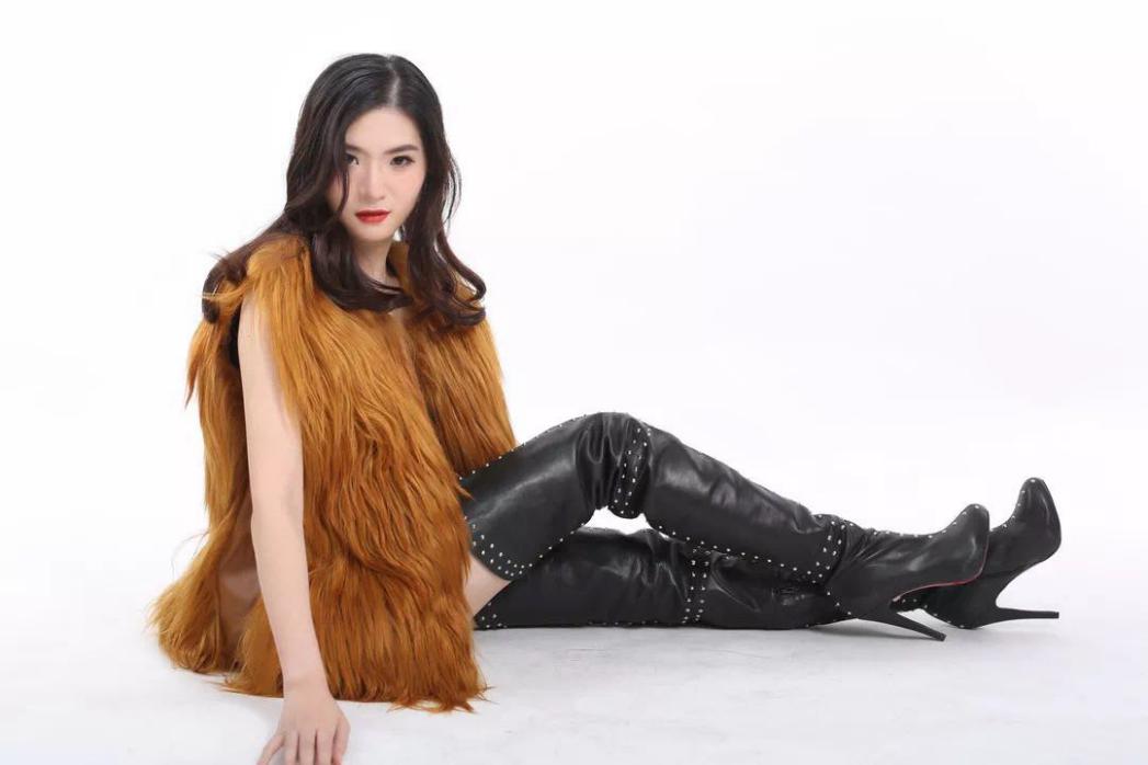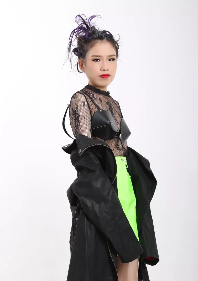 Nana長得特別冷艷的,內(nèi)心像藏了一頭野獸,如果穿日韓風(fēng)的話會埋沒了她的氣場。這次給她選擇了現(xiàn)在國際最流行的PVC靴子,搭配了熒光色的短裙,她完全可以撐起來。