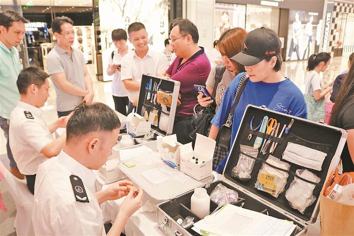 “我想檢測一下我的化妝品是否安全”,市民蔣女士帶著自己日常用的面膜在壹方城化妝品快檢點排起了隊,“往臉上涂的一定要格外注意,有沒有非法添加違禁物質要檢測后才知道,看到今天有免費檢測,我就立馬過來了”。原來,為強化轄區(qū)化妝品的監(jiān)管力度,深化消費者對化妝品安全的認識,深圳市市場和質量監(jiān)督管理委員會寶安局醫(yī)療器械科9月13日在壹方城內舉行了以“守護美麗,安全同行”為主題的化妝品安全宣傳活動,現場的“你送我檢”活動備受愛美人士歡迎。市市場和質量監(jiān)管委保化處副處長方友川、市市場和質量監(jiān)管委寶安局副局長陳子晟參與當天活動。