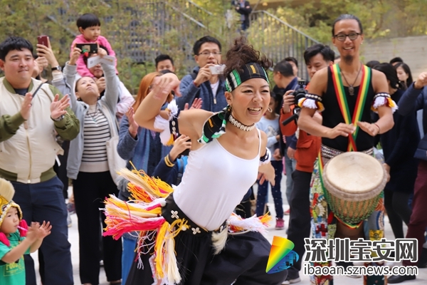 “冬添集市”分為六大板塊,包含:“添趣”“添織”“添耕”“添音”“添物”“添食”,其中最熱鬧的就要數(shù)主舞臺區(qū)的“添音”展區(qū),JAMMALA樂隊(duì)和非錄音樂俱樂部連續(xù)兩日,準(zhǔn)點(diǎn)帶來音樂表演。JAMMALA樂隊(duì)是由一群來自世界各地鼓友們成立的一支非洲傳統(tǒng)打擊樂隊(duì),10日下午3:30,熱情洋溢的鼓聲在泰華梧桐島響起,伴隨著歡快的舞蹈,不少參觀市民加入到游街表演的隊(duì)伍中來,禁不住一起跳起來,唱起來,現(xiàn)場活動(dòng)氣氛熱烈。