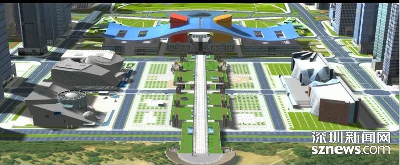 圖為深圳城市仿真系統(tǒng)呈現(xiàn)的深圳中軸線