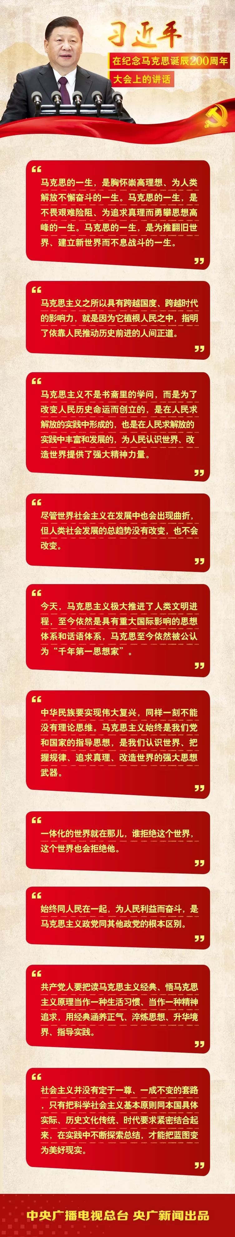 2018年5月4日上午10時(shí),紀(jì)念馬克思200周年誕辰大會(huì)在人民大會(huì)堂舉行。中共中央總書記、國(guó)家主席、中央軍委主席習(xí)近平出席大會(huì),并發(fā)表重要講話。