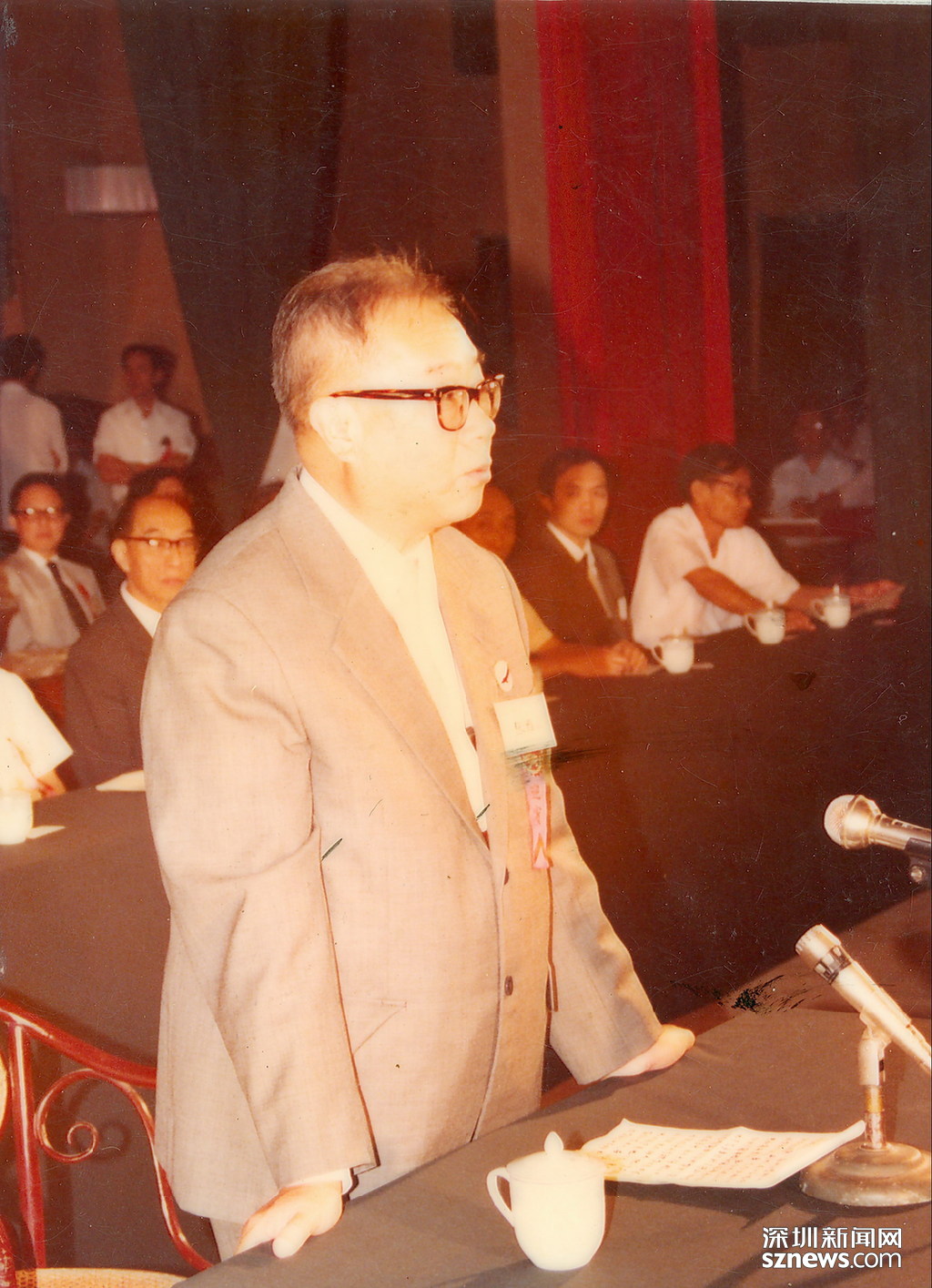 1983年9月27日,深圳大學(xué)成立暨首屆開學(xué)典禮大會在深圳戲院隆重舉行,首任校長張維在開學(xué)典禮上致辭。(資料圖片,由深圳大學(xué)提供)