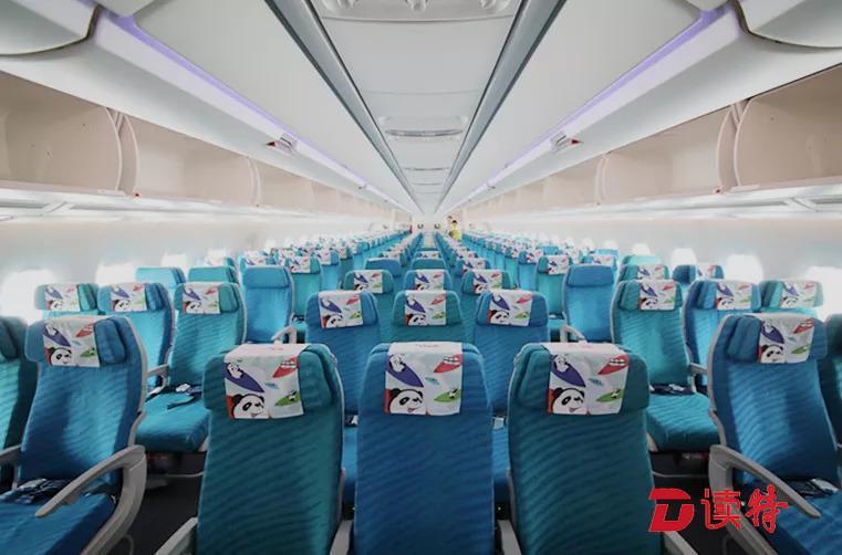 除了色彩繽紛的熊貓彩繪之外,機(jī)艙內(nèi)的熊貓?jiān)仉S處可見,仿佛把大熊貓基地搬上了天。