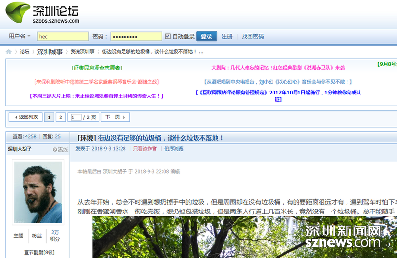 深圳新聞網(wǎng)9月6日訊(記者何暢)“街邊沒有足夠的垃圾桶,談什么垃圾不落地!”,網(wǎng)友“深圳大胡子”在深圳論壇發(fā)帖吐槽,自己在福田區(qū)香蜜湖香水一街附近想扔掉手中的垃圾,但是兩條人行道上幾百米長(zhǎng)的路段竟然找不到一個(gè)垃圾桶!