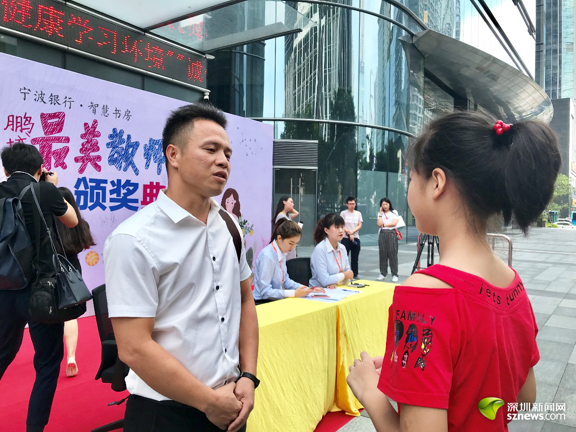 深圳新聞網(wǎng)訊 2018年9月8日上午,寧波銀行深圳分行和深圳新聞網(wǎng)在寧波銀行門前舉辦了鵬城最美教師頒獎典禮,現(xiàn)場有34位優(yōu)秀教師獲得了最美教師獎,10位教師獲得最佳人氣獎,深圳新聞網(wǎng)的小記者采訪了這些老師。