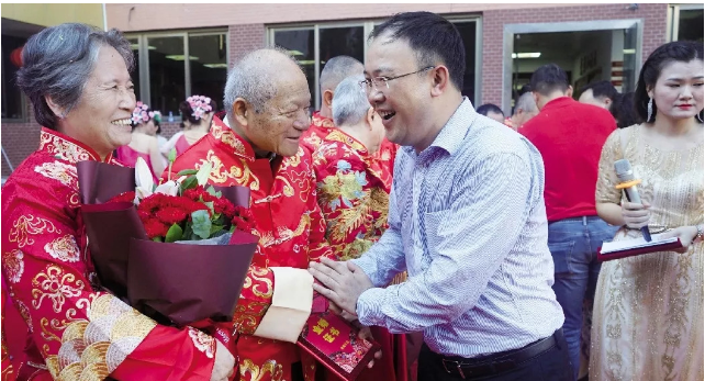 老人們雖然大多語(yǔ)言拘謹(jǐn),不少羞于表達(dá)愛(ài)意,但幾十年的風(fēng)雨同行,甘苦與共,相濡以沫,他們已用實(shí)際行動(dòng)踐行“執(zhí)子之手、與子偕老”的不變承諾。他們對(duì)婚姻的堅(jiān)守,彼此不離不棄,讓人為之動(dòng)容、深受感染,獲頒金婚證書(shū)。