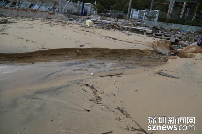 小梅沙旅游度假村景區(qū)內(nèi)沙灘海沙被卷走超7萬多立方,約2000米的堤岸及道路沖垮,公共、建筑設(shè)施及構(gòu)筑物全部受損,部分完全損毀,13處經(jīng)營(yíng)管理場(chǎng)所損毀,綠化、樹木等嚴(yán)重破壞,直接經(jīng)濟(jì)損失預(yù)估超過5000萬元。