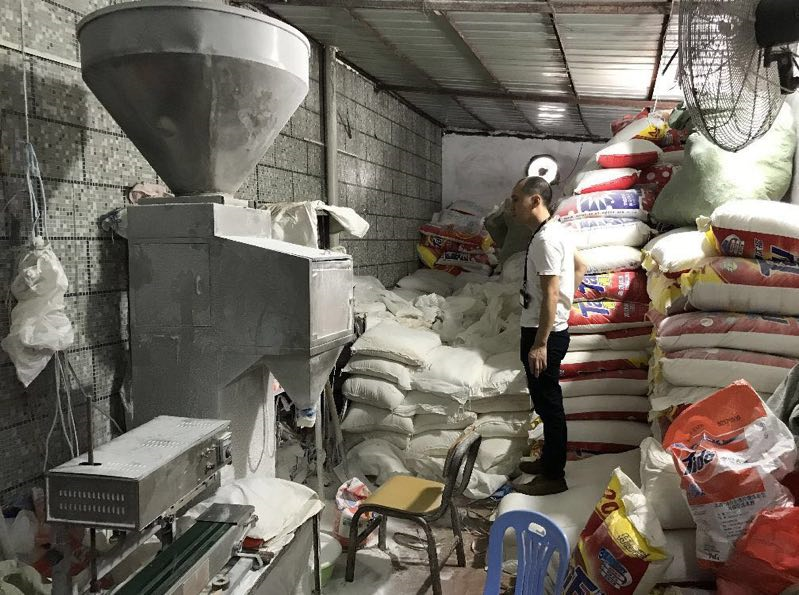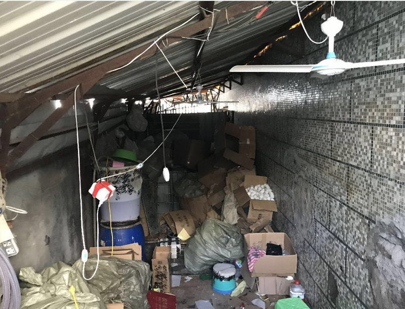 執(zhí)法人員來到位于龍東社區(qū)同昌路的一個工業(yè)區(qū)進行突擊檢查。剛進入該工業(yè)區(qū),執(zhí)法人員就發(fā)現(xiàn)有幾間鐵皮房大門緊鎖,通過門縫還能看到大量各品牌的洗衣粉、消毒液,以及各式設(shè)備數(shù)臺。經(jīng)檢查,現(xiàn)場共有這類鐵皮房3個,分散在工業(yè)園區(qū)3個不起眼的角落,占地面積超過200平方米。鐵皮房內(nèi)環(huán)境惡劣、電線亂搭,地上堆滿各種標(biāo)識的加工原料以及各種日化品牌的包裝袋,數(shù)量巨大。