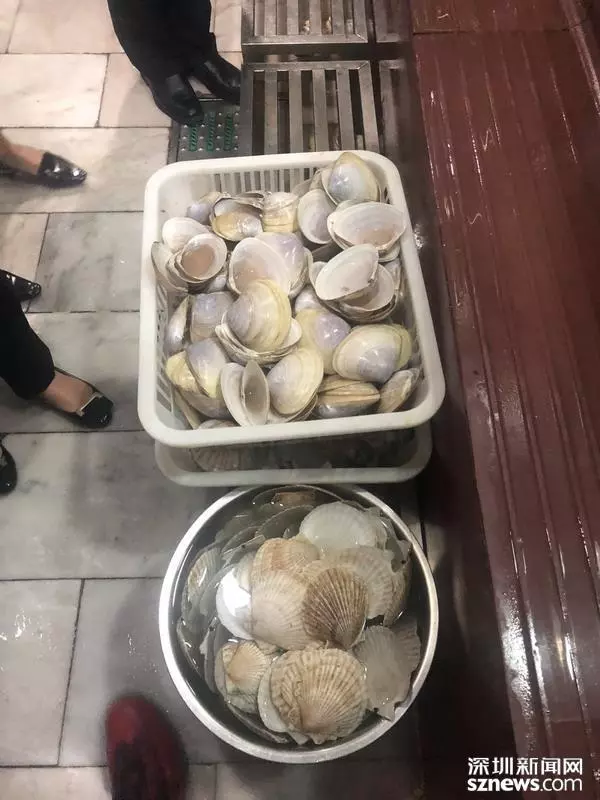海鮮殼隨意擺放,執(zhí)法人員稱應放在生品待加工區(qū)