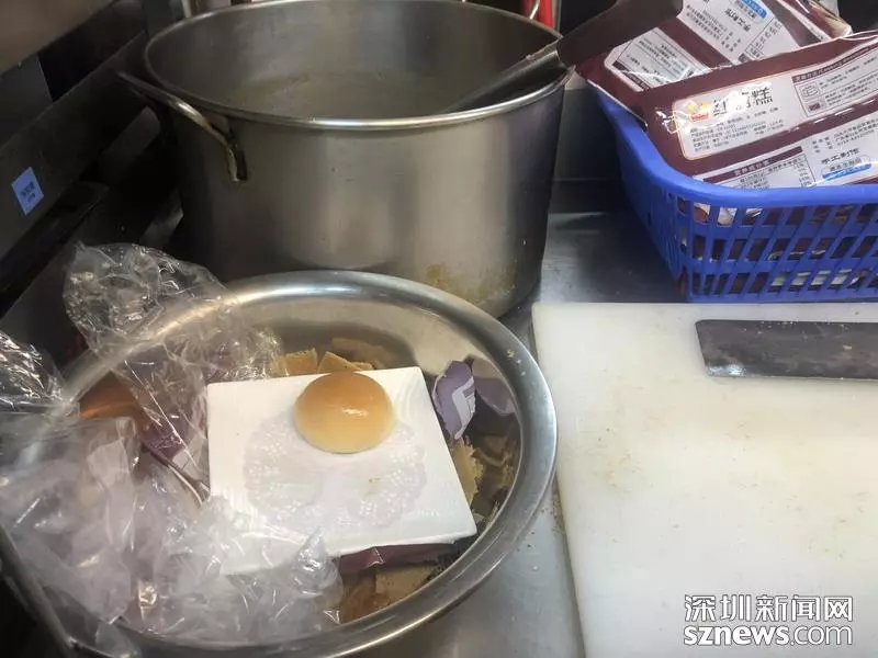 切糕區(qū)域用臉盆裝垃圾,執(zhí)法人員建議設(shè)加蓋垃圾桶