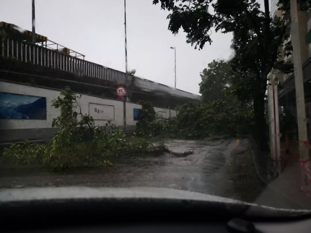 9月16日臺(tái)風(fēng)侵襲深圳,下午1點(diǎn)半左右,南園所徐濤副所長(zhǎng)帶領(lǐng)民警在街面查看災(zāi)情,路面滿(mǎn)地狼藉,被風(fēng)刮斷的樹(shù)木橫七豎八,擋住許多車(chē)道。