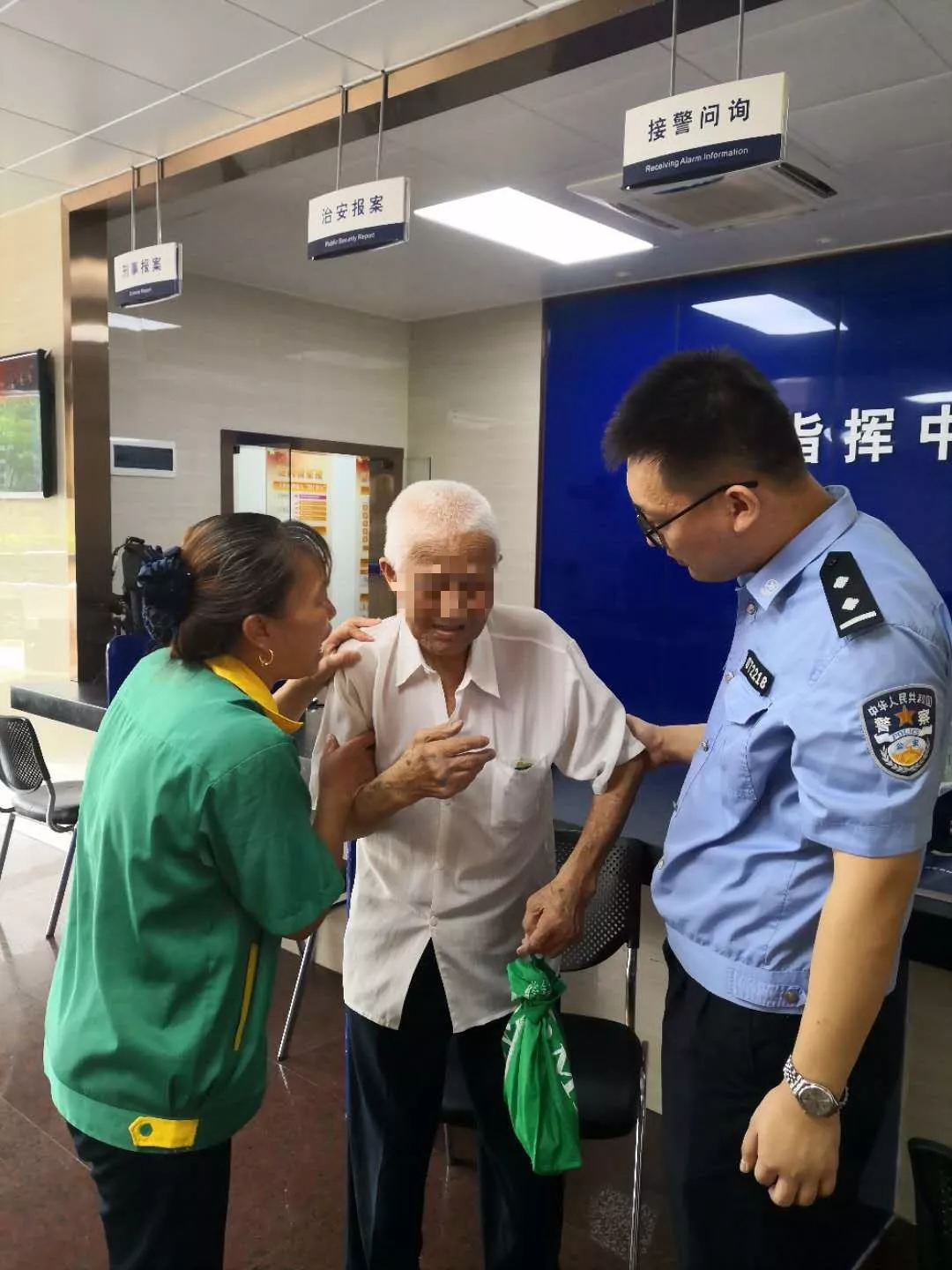 9月19日中午12時(shí)30分許,天安派出所巡防隊(duì)員在福田汽車(chē)站警銀亭值守時(shí),發(fā)現(xiàn)一名疑似走失老人,巡防員上前詢(xún)問(wèn)情況后立即將情況上報(bào)值班室。巡邏民警邱志堅(jiān)趕到現(xiàn)場(chǎng),由于老人高齡,語(yǔ)言不通,無(wú)法獲得更多有效信息,于是帶回派出所進(jìn)一步處理。