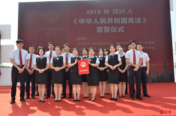 深圳新聞網(wǎng)訊 “我宣誓:忠于中華人民共和國憲法,維護(hù)憲法權(quán)威,履行憲法規(guī)定的公民基本義務(wù),做一名愛國、敬業(yè)、誠信、友善的守法市民,為深圳建設(shè)法治中國示范城市努力奮斗!”