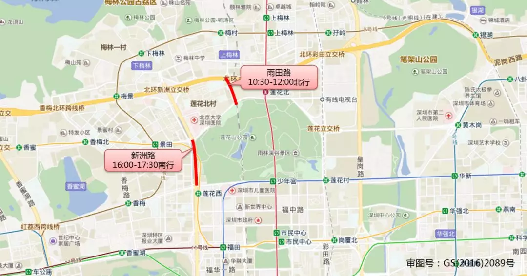 民康路出入口-梅觀(guān)路出入口段:09:30-11:00、18:30-19:30