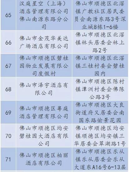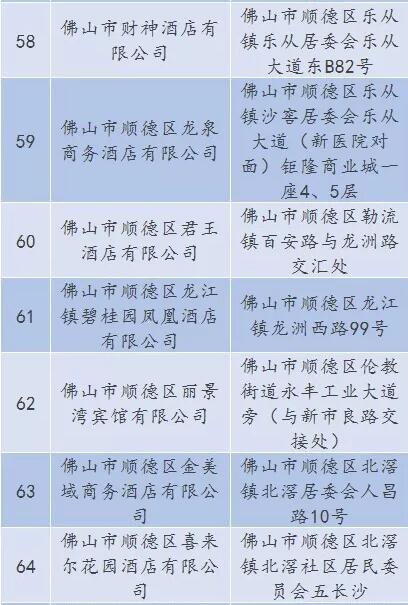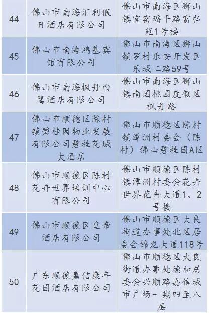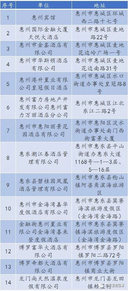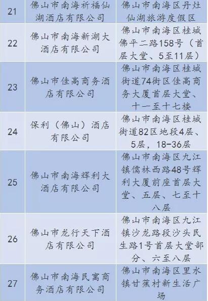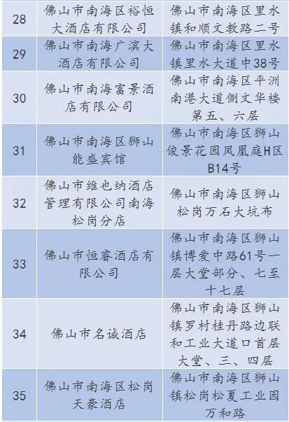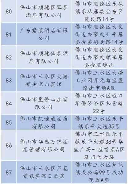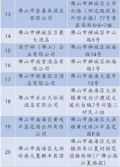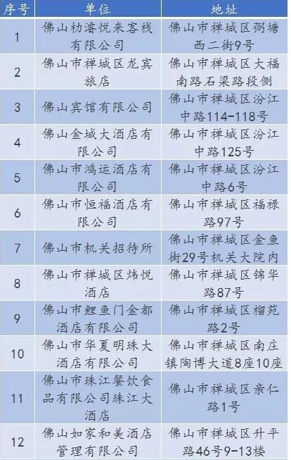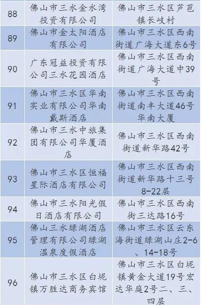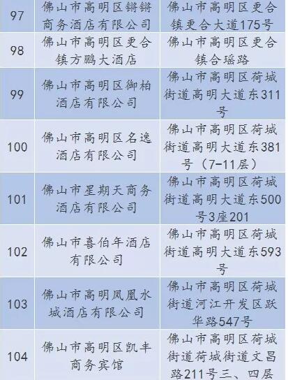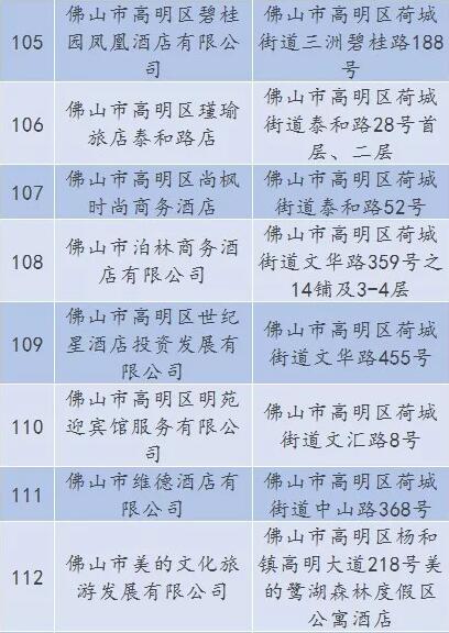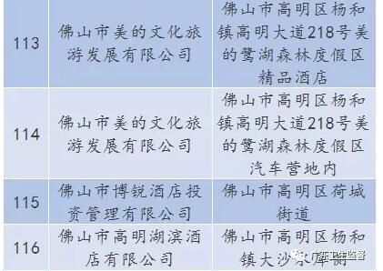 廣東省A級住宿單位名單