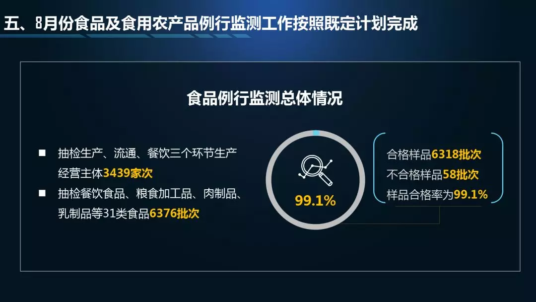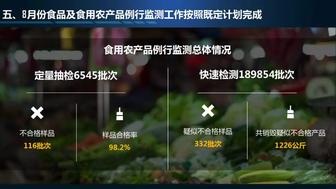 8月份食品及食用農(nóng)產(chǎn)品例行監(jiān)測工作按照既定計劃完成