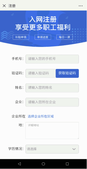 第二步:進(jìn)入注冊頁面,使用手機號及驗證碼注冊/登陸,選擇相應(yīng)的補貼(“提升學(xué)歷”或“提升技能”)項目;