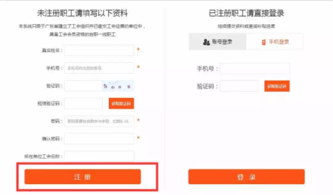 1.新注冊(cè)職工必須填寫完整信息--點(diǎn)擊提交資料--完成注冊(cè),系統(tǒng)自動(dòng)跳轉(zhuǎn)領(lǐng)取補(bǔ)貼頁面;